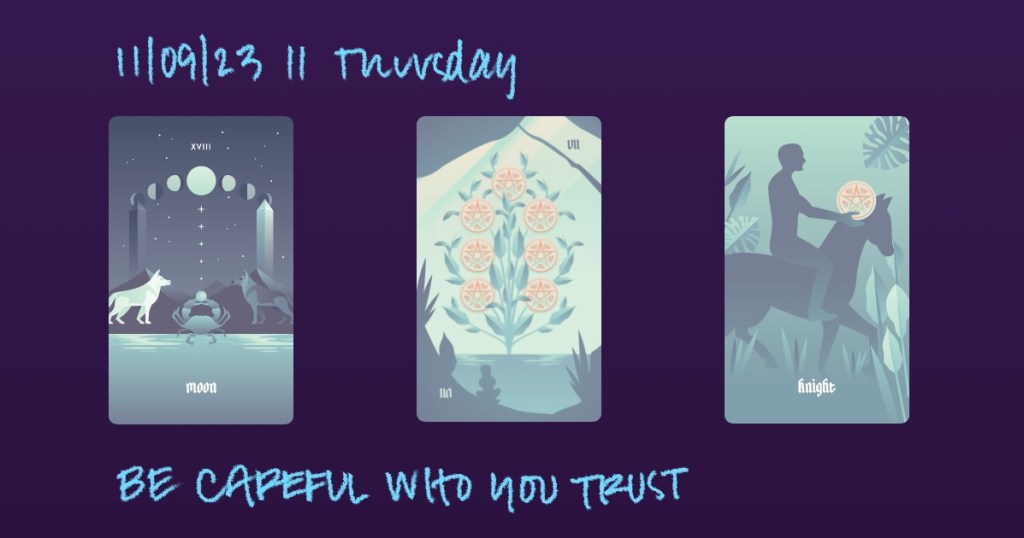 The Moon, 7 of Pentacles, Knight of Pentacles