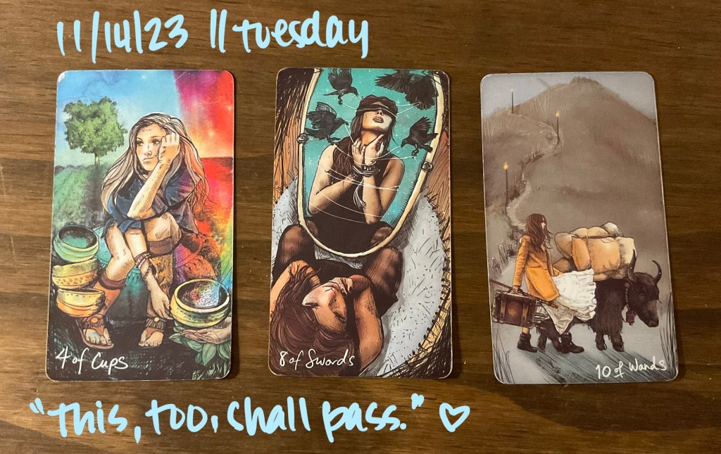 Hello friend, I’m glad you are here today. No matter what you’re going through or what you’re feeling, you are so welcome here at my kitchen table. If this resonates for you in any way, I hope my interpretations can help bring guidance and clarity. If not, I hope that you still enjoy your visit. Let’s get to these cards.