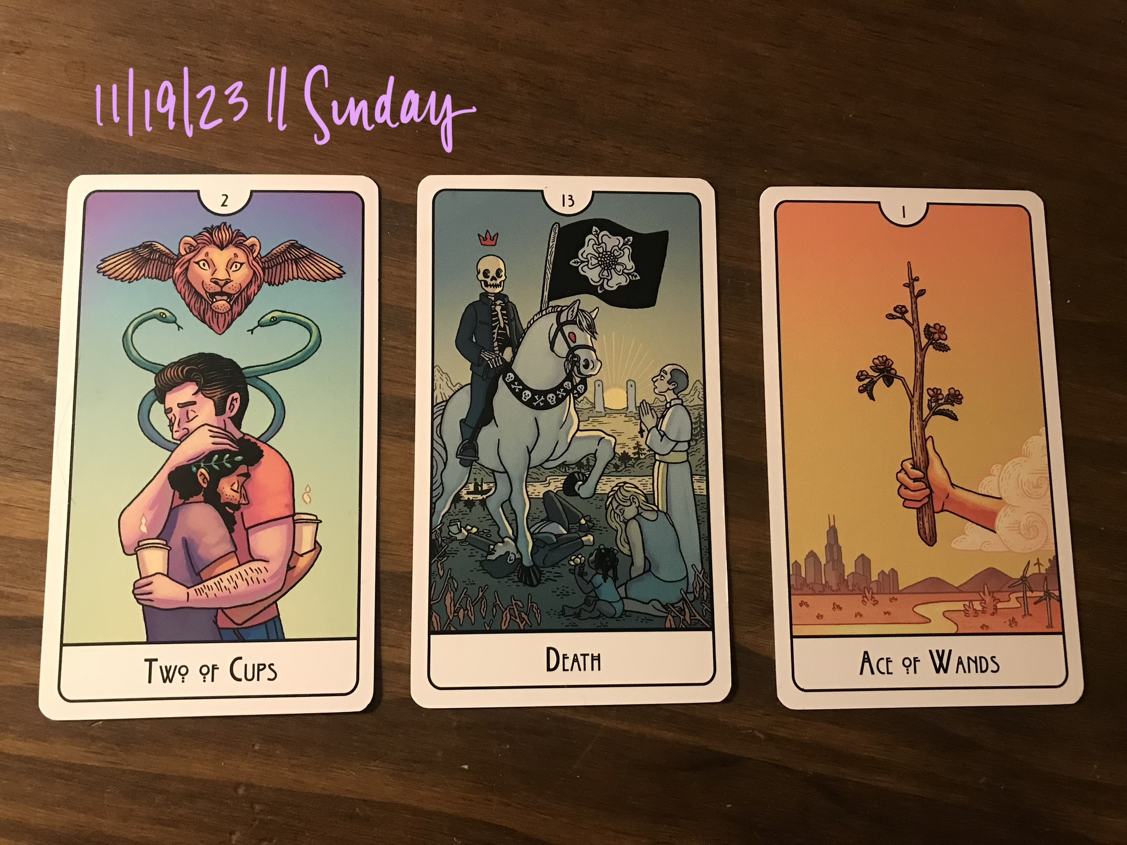 I used a different deck today, the This Might Hurt tarot deck by artist Isabella Rotman. I shuffled with my usual deck, the Lightseer, for a long time before finally getting the hint that it didn’t want to speak. I was drawn to This Might Hurt because I love the bright colors and clear illustrations, and Rotman’s careful attention to the symbolism found in tarot brings a real clarity. I hope you enjoy the artistry of these cards as much as I do.