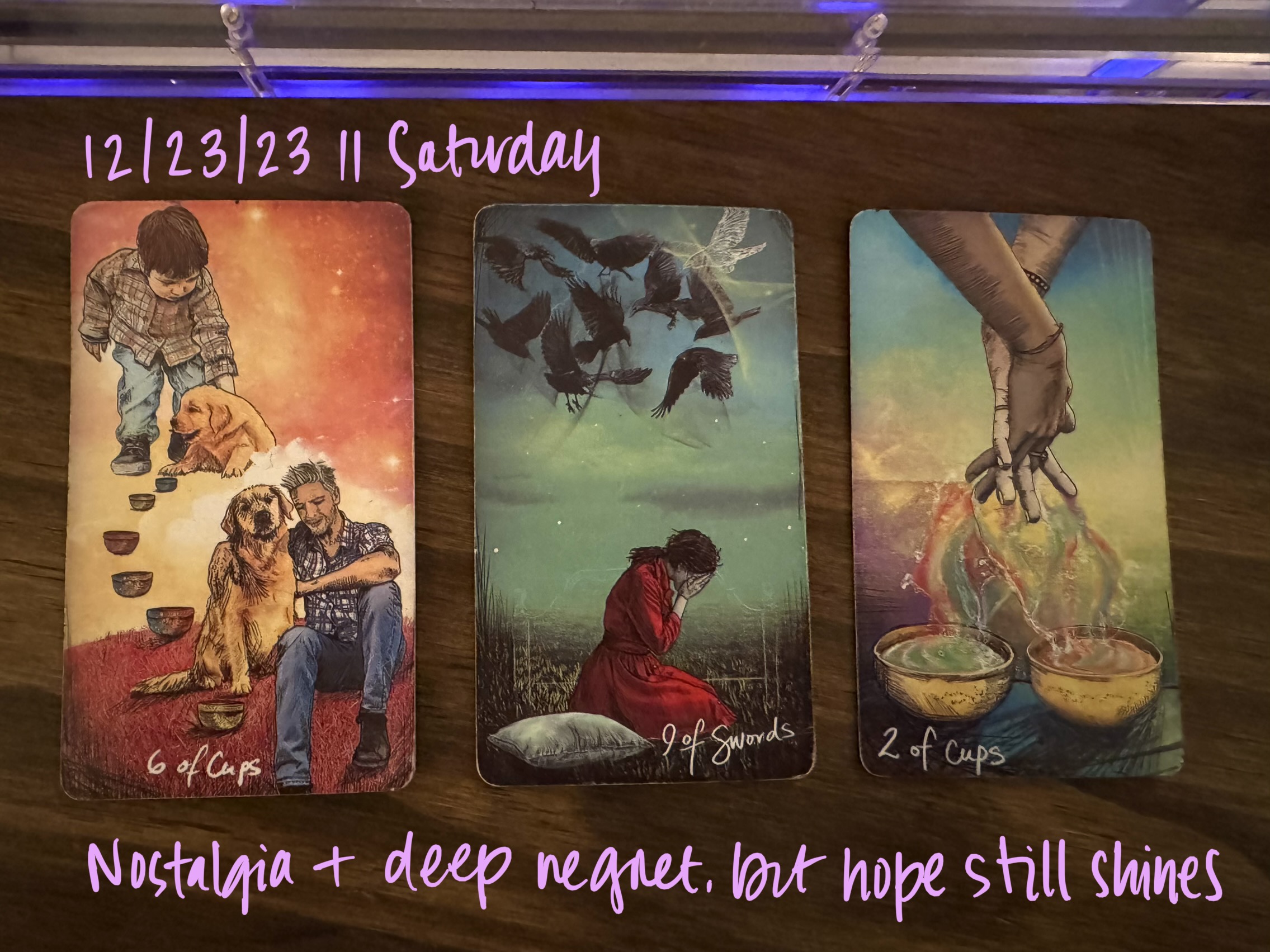 6 of Cups, 9 of Swords, 2 of Cups